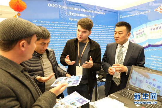 12月18日,在乌兹别克斯坦首都塔什干青年创业中心,当地客商在向新疆企业咨询商品信息。 第十届中国新疆商品展览会18日在乌兹别克斯坦首都塔什干开幕,为促进乌中经贸往来和企业合作搭建平台。本届展览会为期三天,共有30家新疆企业参展,展品涵盖机电、建材、纺织、服装、食品、新能源和物流等领域。 新华社记者 蔡国栋 摄