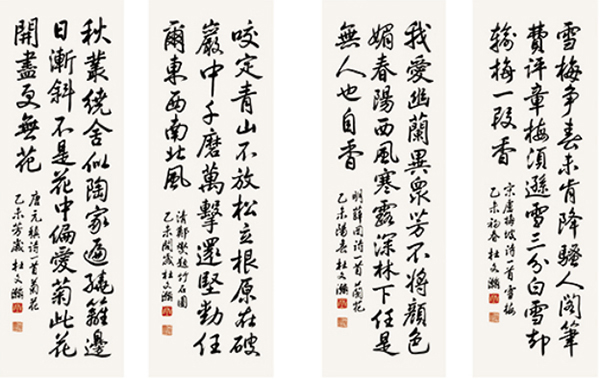 梅兰竹菊四条屏(行书)138cm×46cm×4