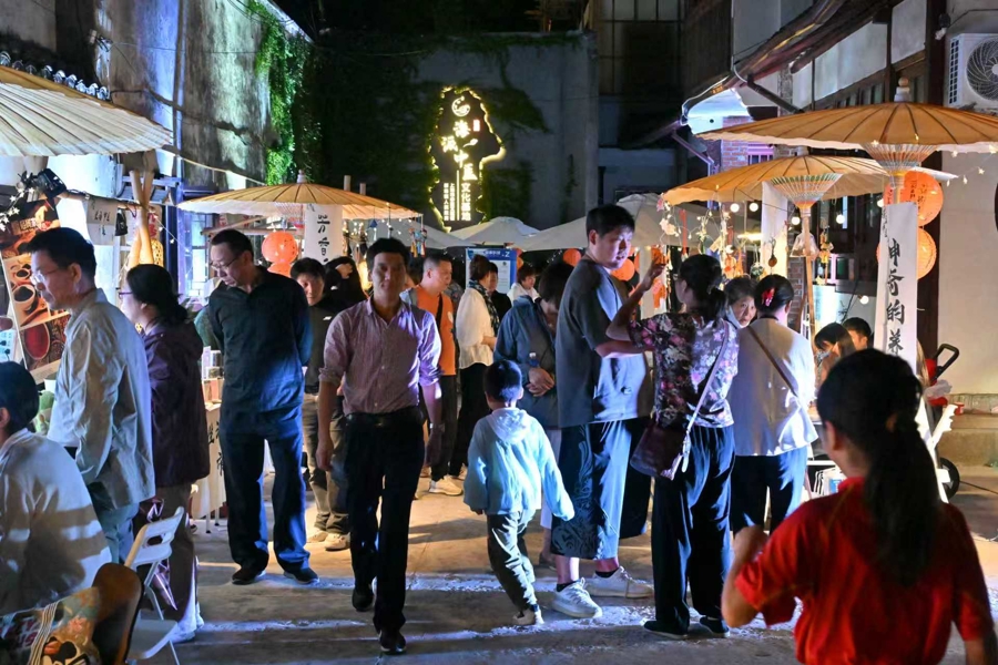 夜幕降临后,星光夜市与光影秀则为古老医术披上时尚外衣。“霓虹杏林夜集”上,年轻人在炫酷光影中体验眼部中药熏蒸的舒缓;AI智能诊脉仪前排起长队,科技让古老的“切脉”变得可视化、可互动。这些活动不仅吸引了大量市民游客,更让附近居民深感便利与亲切。