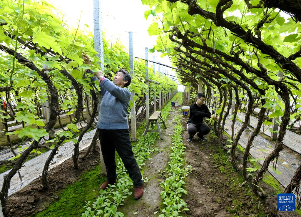 2月4日,河北省唐山海港经济开发区王滩镇的农民在管护大棚葡萄。