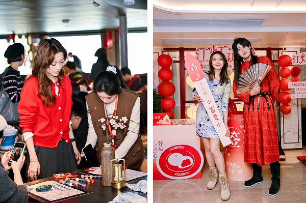活动深度践行“以文塑旅、以旅彰文”理念,创新打造移动的“文化沉浸空间”。航程中“长江三峡十二时辰”古风游园,通过“通关文牒”互动、NPC巡游、甲板亮灯、非遗手作等环节,让宾客身临其境地步入中国传统的时空美学。