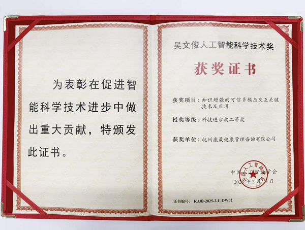 吴文俊人工智能科学技术奖被誉为中国智能科学技术领域最高奖,评审标准严苛、行业含金量极高,是衡量企业技术创新能力的重要标杆。此次获奖项目聚焦多模态交互技术在可信性、实用性、安全性上的关键突破,智云健康作为核心产业化应用单位,深度参与技术研发与场景落地。依托海量慢病管理数据与丰富实践场景,项目团队在医疗知识图谱构建、多轮智能问诊交互、医疗数据隐私保护与安全计算等核心方向实现联合攻关,有效解决了AI医疗应用中知识准确性不足、交互可信度不高、数据安全风险等行业痛点。