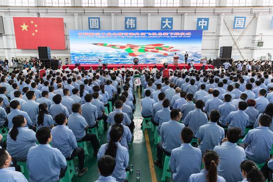 山鹰”首架外贸飞机总装下线现场一览。