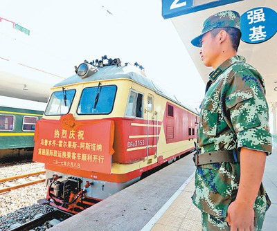 6月8日,开往哈萨克斯坦阿斯塔纳的9001次国际旅客列车整装待发。新华社发