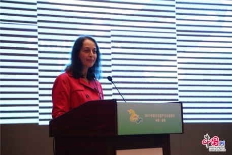 塞尔维亚驻华使馆公使衔参赞、副馆长塔特亚娜·帕娜由朵维奇·茨维特科维奇发言(摄影 中国网/舒珺)