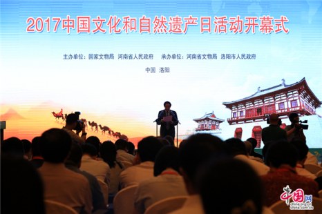 2017中国文化和自然遗产日活动式在洛阳开幕,这是我国第九个文化遗产日主场城市活动,也是我国首个“文化与自然遗产日”,活动开幕式与“文化遗产与‘一带一路’”论坛共同举办,由国家文物局、河南省人民政府主办,河南省文物局、洛阳市人民政府承办。