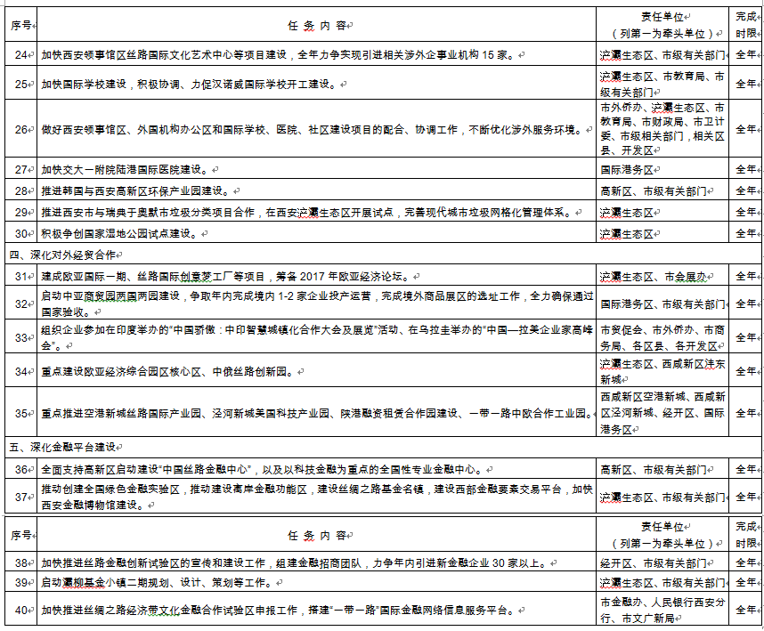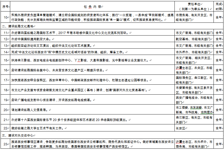 附件:西安市“一带一路”建设2017年行动计划任务分工表