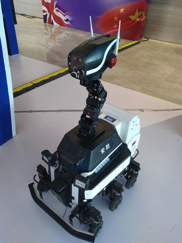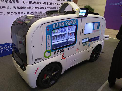 除了这些装备,民用产品也不少:如在小区巡视的六轮机器人。值得注意的是,5G应用成为展出重点。如用于街头零售业的,全球唯一可供货的L4级无人车,还有实时实地360度观景VR,都以5G网络为基础。
