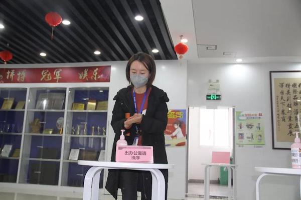 制定、执行并监督办公区防疫指导手册,佩戴口罩、进入公司消毒量体温,人与人保持1米距离、各公共区域配置洗手液、食堂就餐管理、办公区每日消毒……各项细则严格执行,严防严控;