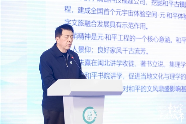 福建省文化和旅游厅党组成员、副厅长、福建省文物局局长傅柒生在致辞中表示,文化是一个国家、一个民族的根脉、血脉。让收藏在博物馆里面的文物、陈列在大地上的遗产活起来有着重要意义。活起来有很多种方式,其中很重要的一点就是数字化。元•和平数字体验馆,就是将千年邵武的历史文化通过数字化科技手段,使其重新焕发出生机,重新彰显出生命,构建起新的生命体和文化体,让人们切身感受到邵武真是一个好地方。