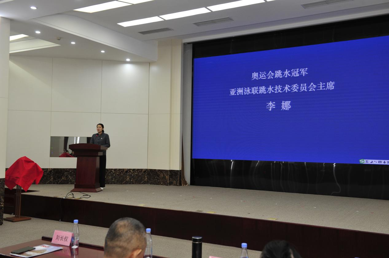 图为奥运会跳水冠军、亚洲泳联跳水技术委员会主席、《城市漫步》推荐官代表李娜致辞。