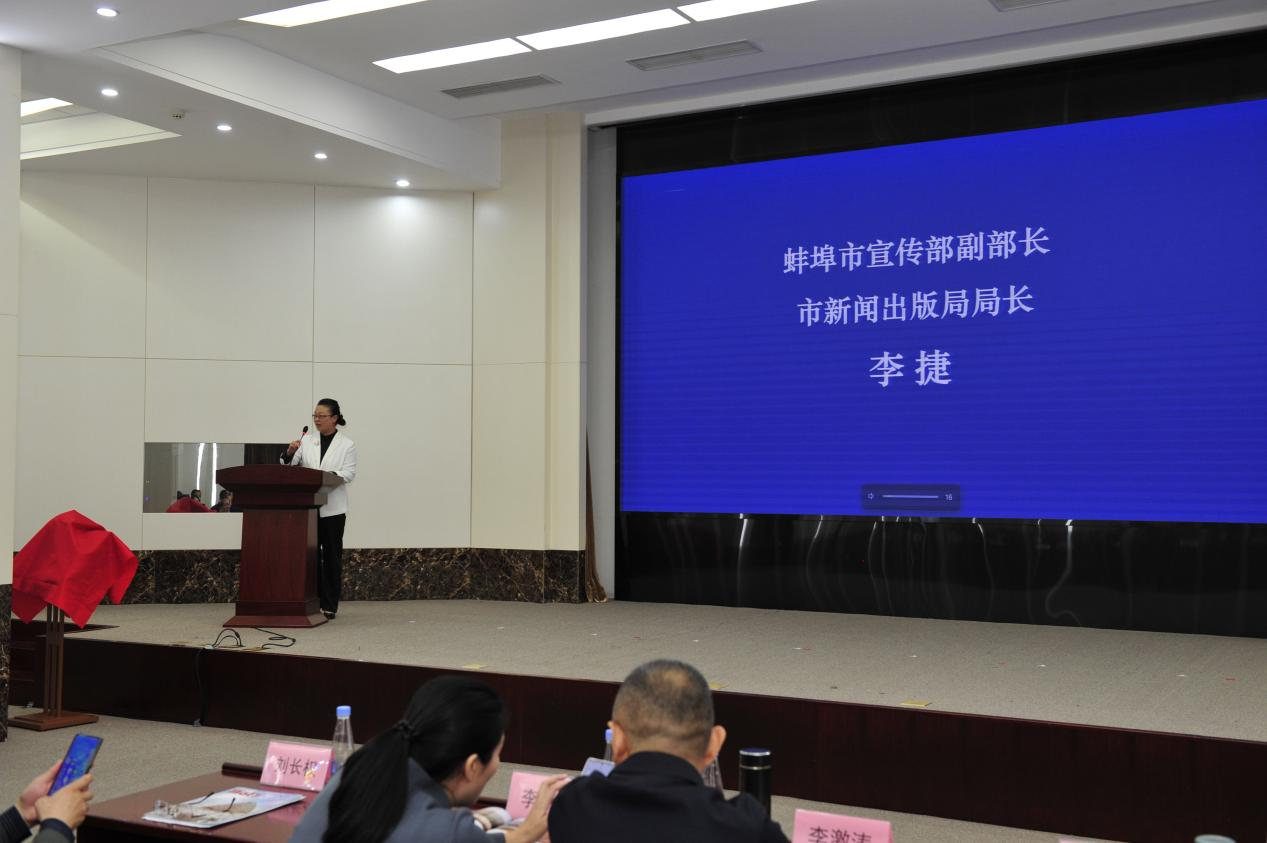 图为中共蚌埠市宣传部副部长、市新闻出版局局长李捷推介蚌埠文旅。
