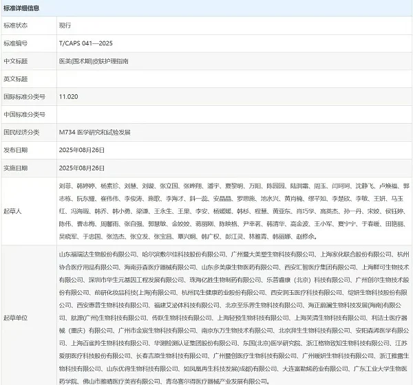 思美润母公司肽源生物凭借在医疗器械领域的深耕积累与卓越研发实力,联合创尔生物、福瑞达生物、上海家化、敷尔佳、协合医疗、乐普睿康、暨大美塑 等30多家行业单位,携手推进团标制定工作。各参与方充分发挥自身专业优势,共同探讨围术期护理的关键环节与技术要点,协同构建科学严谨的行业标准体系。此举不仅确保团标贴合行业发展需求,更能切实指导临床实践,为医美机构提供清晰的护理操作依据,最终保障消费者的医美安全与合法权益,助力《医美(围术期)皮肤护理团标》落地,推动医美行业标准化发展。