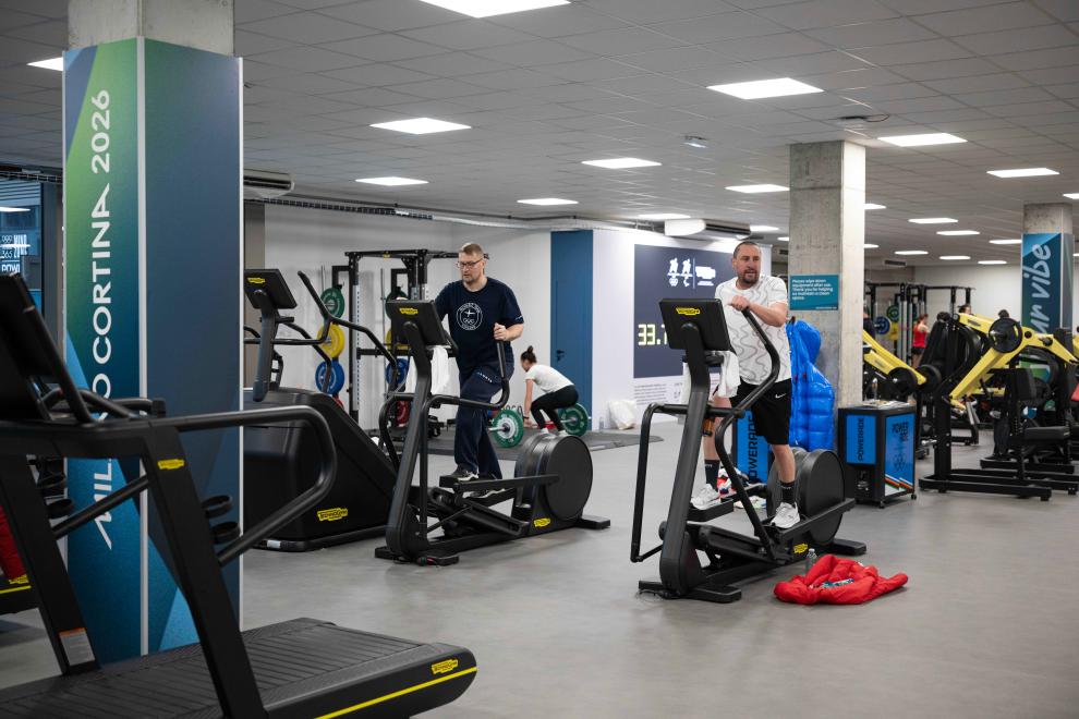 2月3日,运动员在冬奥村的健身房内锻炼。新华社记者 张豪夫 摄